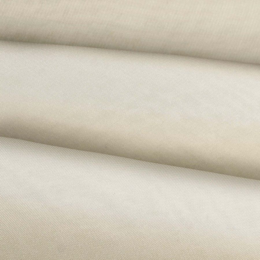 La tela base es Gasa Transparente - Salamanca, con una composición de 100% poliéster y un gramaje de 28 gr/m2. El color liso impreso es Crudo/Seda Cruda, hecho con una combinación de 4% de tinta Cyan, 9% de tinta Magenta y 28% de tinta Yellow en una tecnología de impresión digital textil por sublimación.