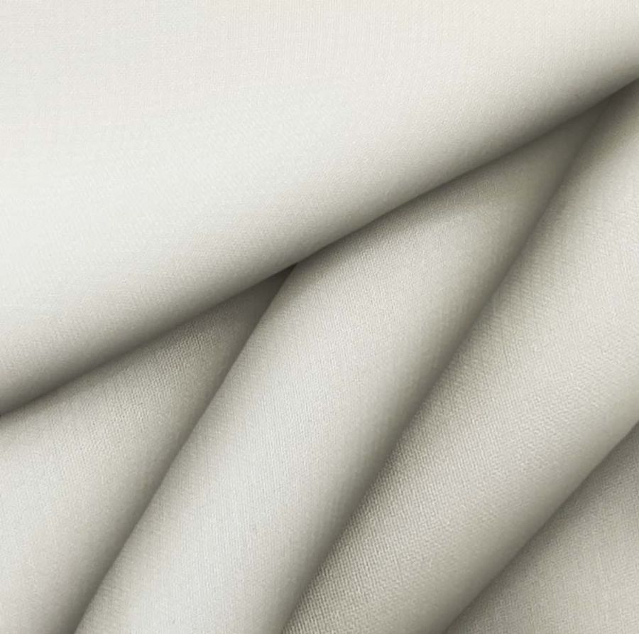 La tela base es la Gasa Transparente - Salamanca, compuesta al 100% por poliéster y con un gramaje de 28 gr/m2. El color liso impreso tiene una base blanca con un sutil tono de cáscara de huevo, reflejado en el CMYK: 2 4 18 0. El color secundario que se destaca es el amarillo, representado por la tinta Yellow: 18, la cual aporta una sensación cálida y luminosa a la tela base. Este color combina especialmente bien con tonos tierra y marrones, así como con los rosas y los verdes suaves.