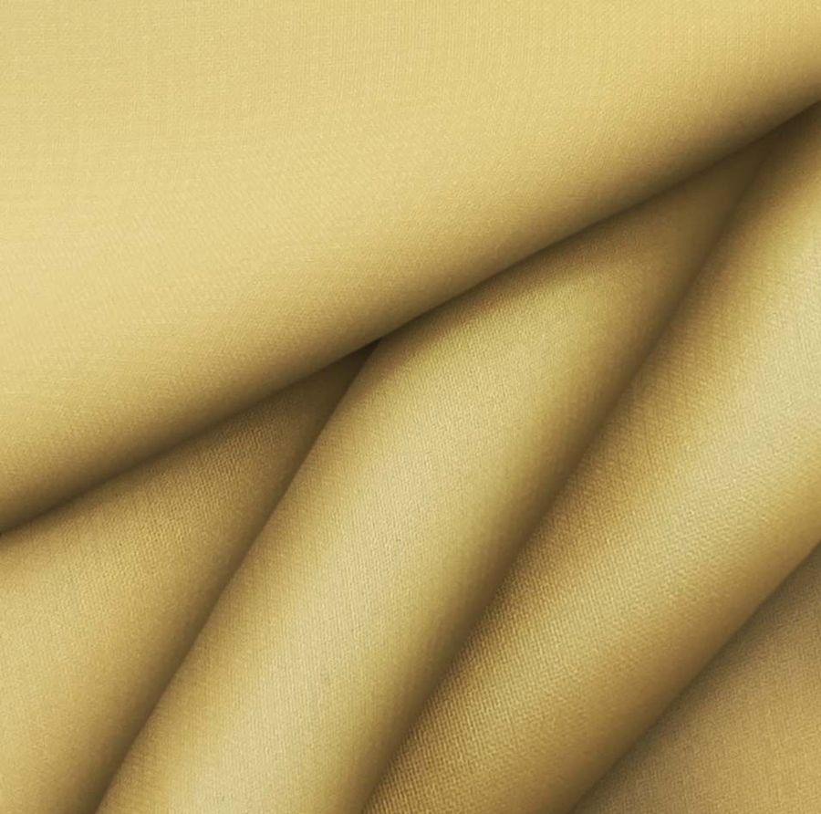La tela base es la Gasa Transparente – Salamanca, una tela de gasa con una composición del 100% de poliéster y un gramaje de 28 gr/m2. El ancho de la tela es de 150 cm y está diseñada para su uso durante la temporada de verano. El color liso impreso es un amarillo cerveza, cuyo CMYK es de 11 33 73 2. Es un color que presenta una textura y un tacto delgados, pero a su vez es visualmente transparente lo que crea un efecto único a la hora de utilizarlo en prendas textiles. Este color combina muy bien con tonos neutros como el blanco o el negro, pero también con colores más fuertes como el rojo o el fucsia.