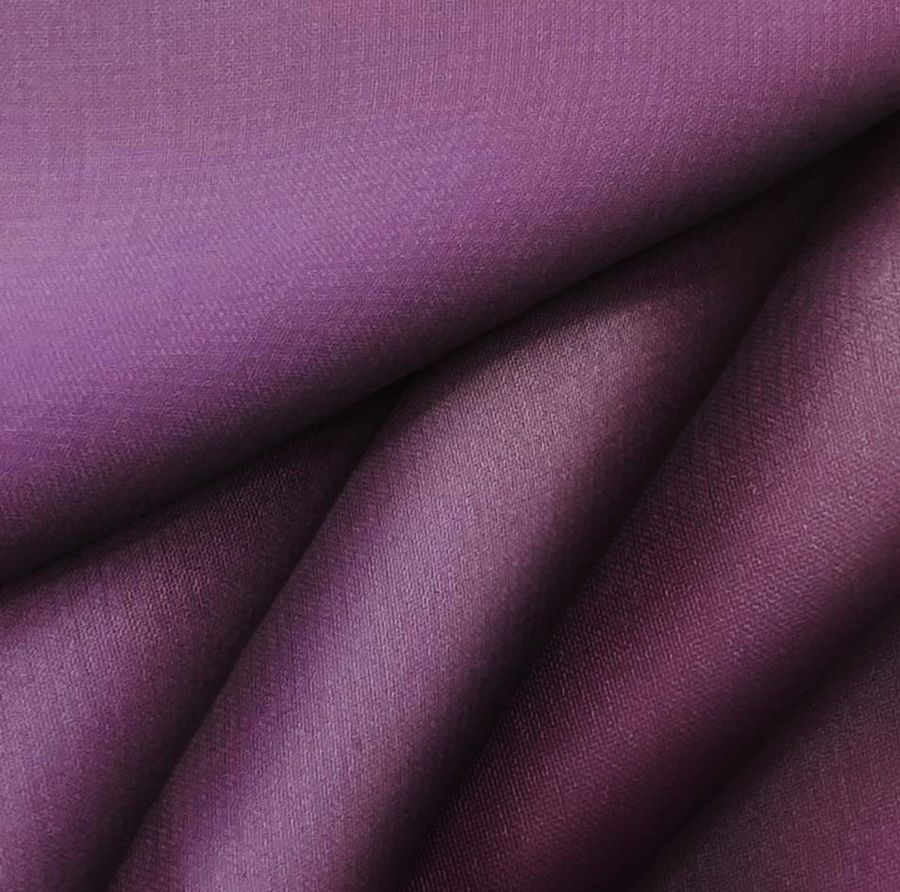 La Gasa Transparente - Salamanca es una tela ligera y transparente de composición 100% poliéster, de 28 gr/m2 y un ancho de 150 cm. Está impresa en un color liso Morado Berenjena, cuyo CMYK es 60 93 36 45. Este color transmite un tono profundo, con notas de frutos oscuros, como la uva, y un toque elegante y sofisticado. El Berenjena es un color perfecto para combinar con tonos tierra, como el Beige, Marrón y Dorado, así como con tonos cálidos, como el Rosado, Naranja y Rojo.