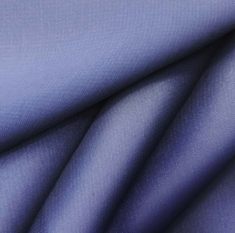 La tela Gasa Transparente - Salamanca es una tela de gasa 100% poliéster con un gramaje de 28 gr/m2. El color liso impreso en esta tela es morado con tonos azul marino púrpura, indicado por un CMYK de 80 73 22 7. Este color es simbólicamente tranquilo y misterioso, y técnicamente resulta en una apariencia elegante y sofisticada. Combinado con tonos grises o neutros, crea un contraste delicado y suave en la tela base transparente. La tela impresa solo tiene color en una de sus caras, y se utiliza un proceso de impresión digital textil para su creación.