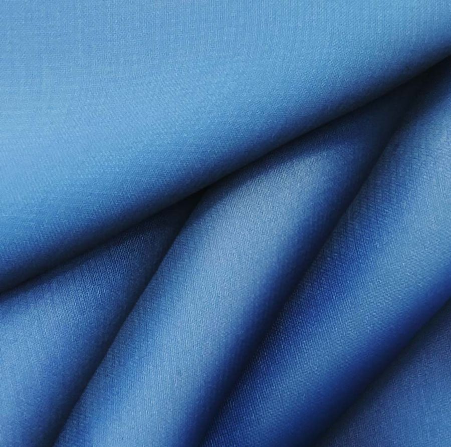 La tela base es la Gasa Transparente - Salamanca, compuesta por un 100% de poliéster y un gramaje de 28 gr/m2, con un ancho de 150 cm. El color liso impreso es un Azul celeste, con un CMYK de 85 59 5 0. El color es suave y fresco, con una sensación de tranquilidad y armonía. Combina bien con tonos pastel como el rosa y el beige, así como con tonos más oscuros como el gris y el navy.