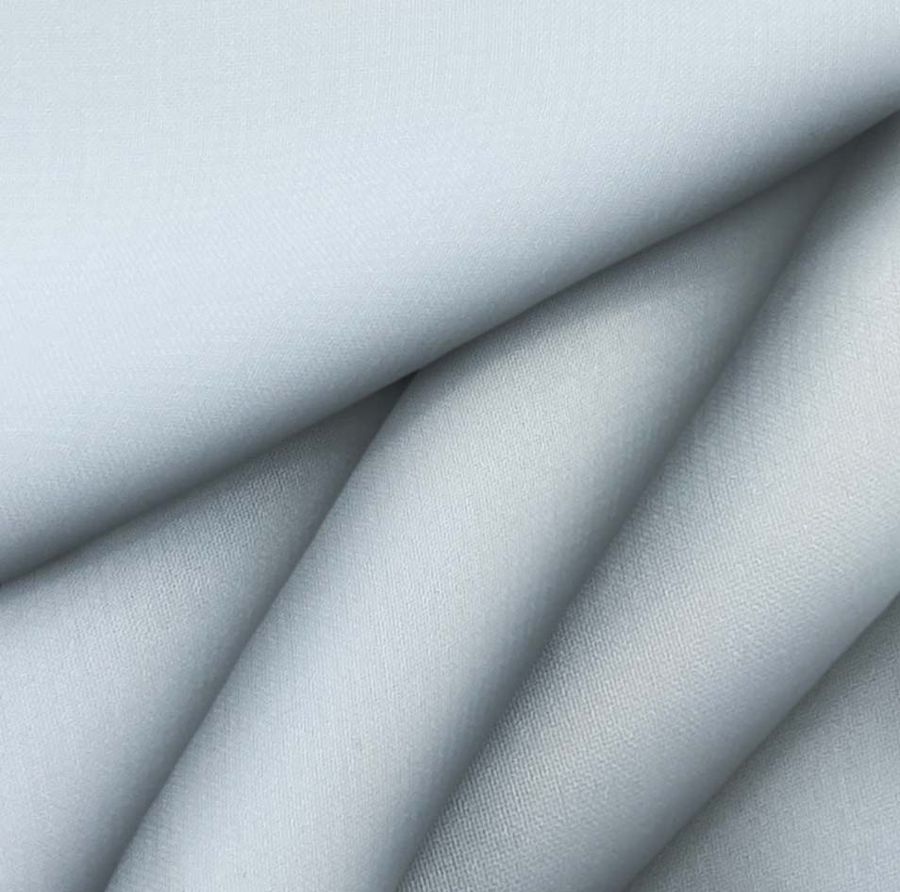 La tela base, Gasa Transparente - Salamanca, es un tejido ligero y transparente de 100% poliéster con un gramaje de 28 gr/m2 y un ancho de 150 cm. El color liso impreso es Azul del Golfo, con un CMYK de 26 7 5 0. Este color tiene un tono azul verdoso, que lo hace perfecto para combinar con tonos más verdes y azules. La tela está impresa a una sola cara por impresión digital textil, lo que significa que el color impreso no es un tinte, sino una impresión en la superficie de la tela.