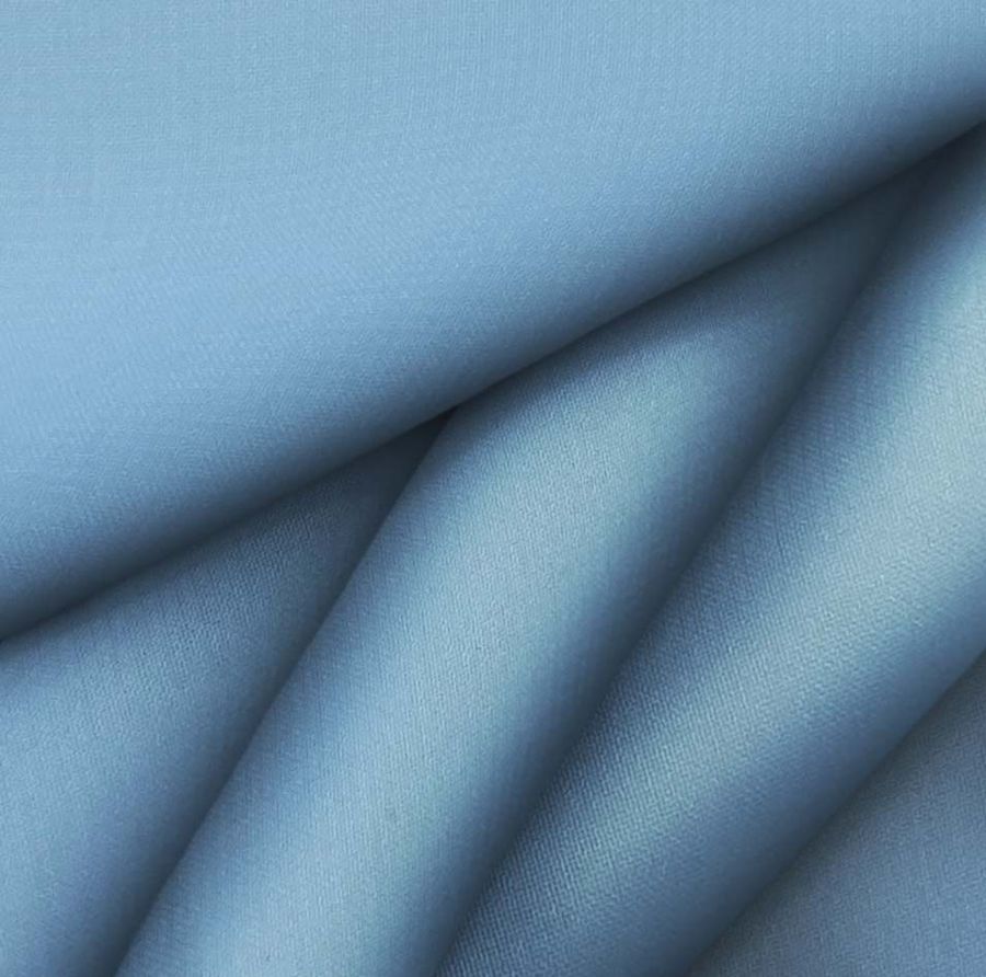La tela base es de Gasa Transparente - Salamanca, 100% poliéster, con un gramaje de 28 gr/m2 y ancho de 150 cm. El color liso impreso es Azul SteelBlue, con la siguiente composición en tintas: Cyan 67, Magenta 39, Yellow 15, Black 2 y CMYK de 67 39 15 2. Este color se caracteriza por ser un tono frío y elegante que combina bien con otros tonos de azul, así como con grises, blancos y negros. Cabe destacar que la tela está impresa con el color liso a una sola cara por impresión digital textil.