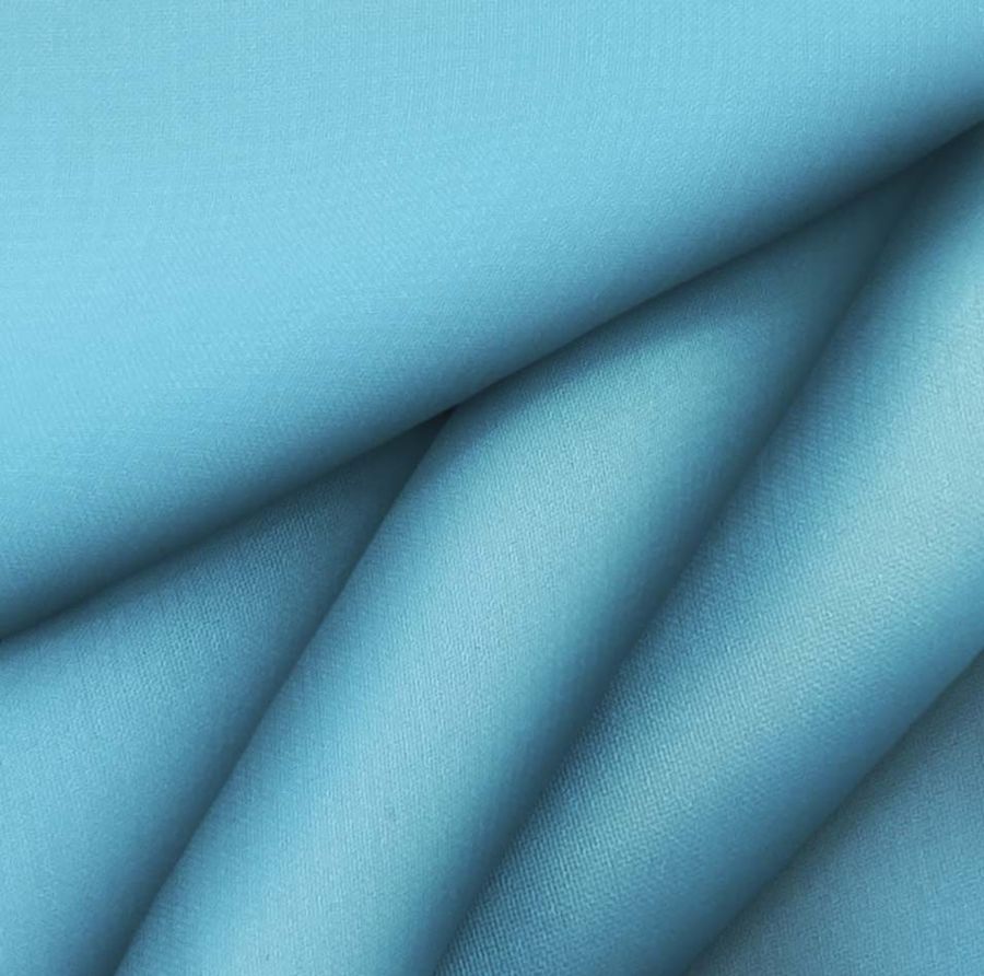 La tela base de esta pieza es la Gasa Transparente - Salamanca, compuesta en su totalidad por 100% poliéster y con un gramaje de 28 gr/m2. El ancho de la tela es de 150 cm y se presenta en un color liso impreso de un maravilloso tono azul mariposa. El CMYK de este color es 65 16 8 0, lo que le otorga una tonalidad intensa y vibrante. Este tono está inspirado en la naturaleza, en la belleza de las mariposas y en la elegancia que transmite el color azul. Este color combina muy bien con colores neutros como el blanco, el negro y el gris, también con tonos dorados y plateados.