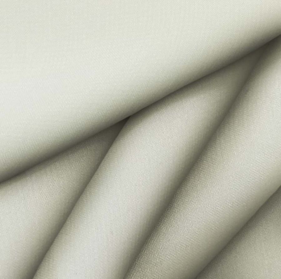 La tela base, Gasa Transparente - Salamanca, es un tejido ligero y transparente de poliéster con un gramaje de 28 gr/m2 y un ancho de 150 cm. El color liso impreso combina una base cruda con matices de ceniza blanca, obtenido gracias a una técnica de sublimación con una mezcla de tintas Cyan 15, Magenta 9, Yellow 31, y Black 0, dando como resultado un CMYK 15 9 31 0. Este color secundario es un tono neutro elegante y atemporal, ideal para diferentes tipos de prendas y accesorios. Se puede complementar perfectamente con tonos pasteles, grises y marrones.