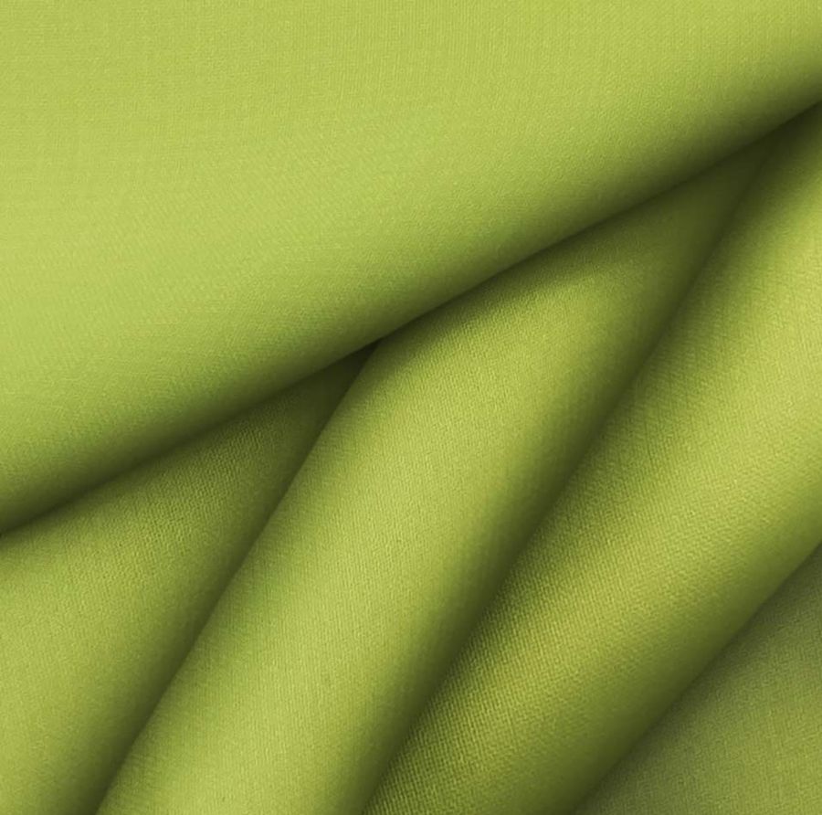 La tela base es la Gasa Transparente - Salamanca, de composición 100% poliéster y un gramaje de 28 gr/m2, con un ancho de 150 cm. El color liso impreso en esta tela es un Veneno Verde con un CMYK de 50 20 97 5, que se caracteriza por tener un tono vibrante y luminoso que combina muy bien con otros colores de la gama de los verdes, así como con colores más neutros como el blanco o el negro.