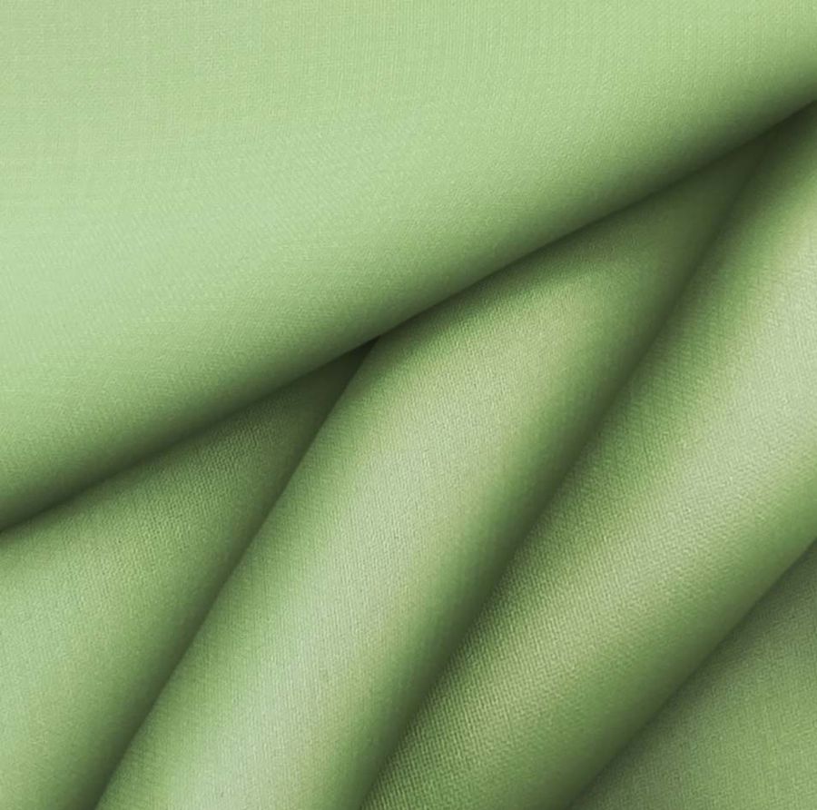 La tela base es la Gasa Transparente - Salamanca, de composición 100% poliéster, con un gramaje de 28 gr/m2 y un ancho de 150 cm. El color liso impreso es un verde con tonos similares al billete de un dólar, con una combinación de tinta cian (52), magenta (9), amarillo (72) y negro (0), dando un CMYK de 52 9 72 0. La tela impresa con el color liso a una sola cara por impresión digital textil.