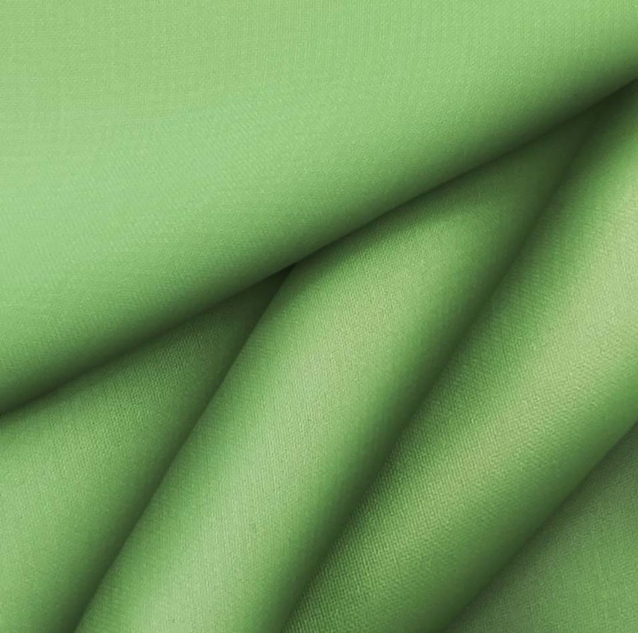 La tela base es Gasa Transparente - Salamanca, 100% poliéster con un gramaje de 28 gr/m2 y una anchura de 150 cm. El color liso impreso es un vibrante verde alga con CMYK: 63 11 84 1. Este color secundario evoca la naturaleza y simboliza la serenidad y la frescura del océano. Combina perfectamente con tonos neutros como el gris o el blanco, así como con otros verdes más suaves o incluso azules. El tejido está impreso con el color liso a una sola cara por impresión digital textil.