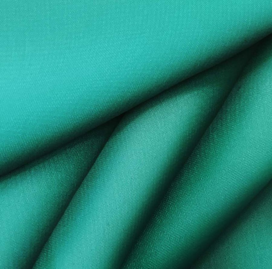 La tela base es la Gasa Transparente - Salamanca, compuesta 100% de poliéster con un gramaje de 28 gr/m2 y un ancho de 150 cm. El color liso impreso es un verde menta oscuro con un CMYK de 83 21 60 5. Este color simboliza la frescura y la tranquilidad y técnicamente es un color que combina el verde, el azul y el amarillo. Su combinación con otros colores es perfecta con el blanco, el gris, el negro y el dorado.