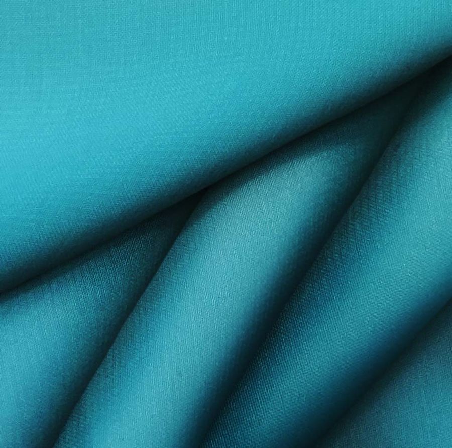 La tela base, Gasa Transparente - Salamanca, es 100% POLIÉSTER con un gramaje de 28 gr/m2 y un ancho de 150 cm. El color liso impreso es Azul, Hosta Azul, con un CMYK de 84 34 34 14. Este color secundario simboliza la tranquilidad y la confianza, y técnicamente se compone de una alta dosis de tinta Cyan y una menor cantidad de Magenta, Yellow y Black. Combina bien con tonos neutros como el blanco y el gris, así como con tonos más vibrantes como el rosa y el morado. La tela está impresa con un color liso a una sola cara por impresión digital textil, lo que asegura una alta calidad de impresión y una gran definición de detalles.