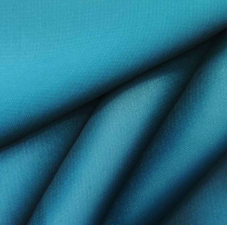 La tela base es la Gasa Transparente de Salamanca, 100% poliéster y con un gramaje de 28 gr/m2. El color liso impreso es un Azul Hielo glacial con los siguientes datos CMYK: 89 46 32 17. Este color es un tono suave y delicado que aporta frescura y serenidad a cualquier creación. Combina perfectamente con blancos, gris paloma y tonos semejantes a la gama de azules claros. Además, la combinación de este color con detalles en tonalidades metalizadas o doradas dará un toque más sofisticado a la prenda. La tela está impresa con el color liso a una sola cara por impresión digital textil.