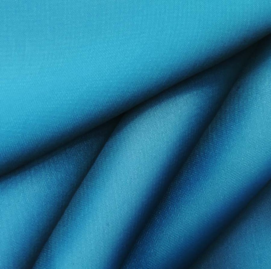 La tela base es la Gasa Transparente – Salamanca, compuesta por 100% poliéster y con un gramaje de 28 gr/m2. Se caracteriza por ser transparente y delicada al tacto, lo que le confiere un aspecto elegante y sofisticado. El color liso impreso es Azul Hielo Glacial, con un CMYK de 87 45 18 4, lo que le confiere un tono suave y diáfano. Este color se combina especialmente bien con tonos pastel y neutros, creando conjuntos equilibrados y armoniosos.