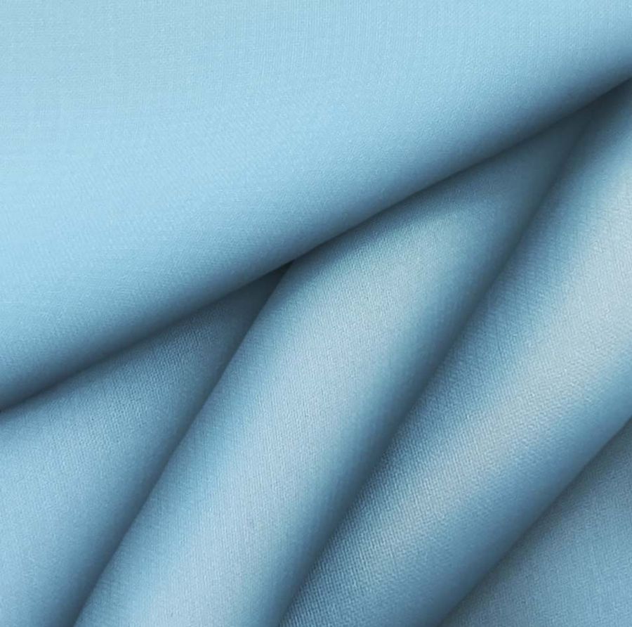 Las características de la tela base son su textura visual y tacto delgado, lo que la hace ideal para prendas de ropa delicadas y ligeras. El color liso Azul Día Cielo Azul transmite elegancia y sofisticación, y al estar impreso en una tela transparente, se logra un efecto único de luminosidad y translucidez.