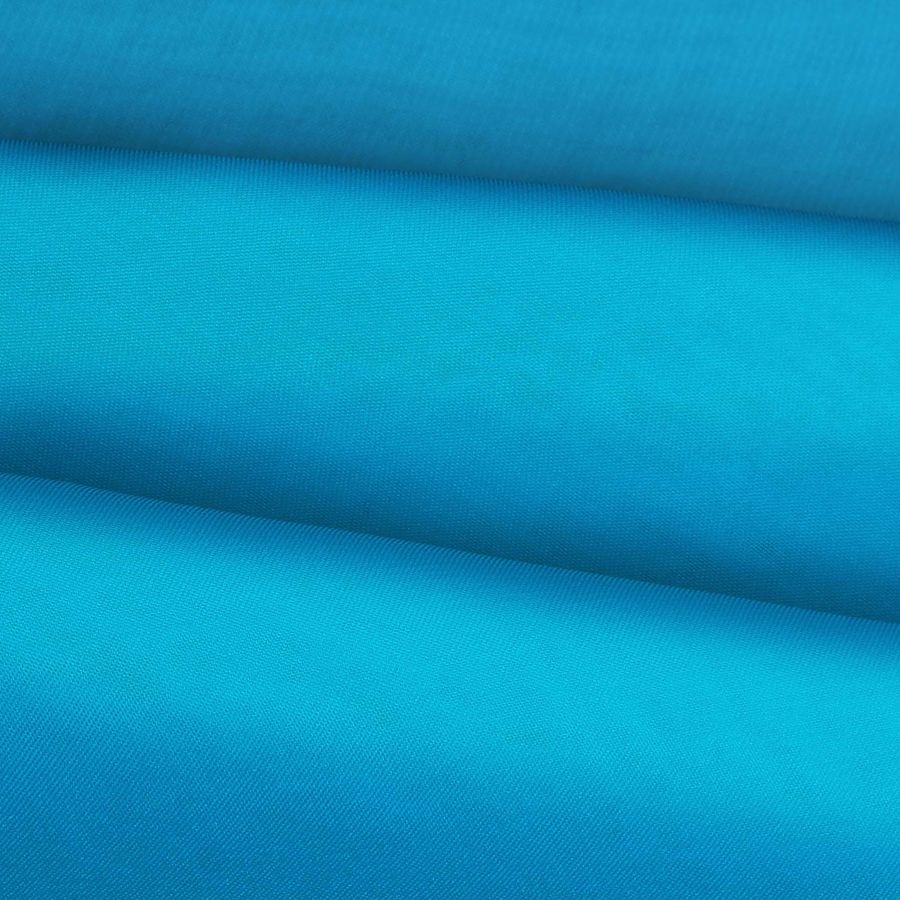 La tela base está impresa con el color liso Azul Mariposa a una sola cara por impresión digital textil. Este proceso implica la transferencia de tinta mediante calor a través de una prensa de sublimación, que permite la fijación de la tinta en la fibra del tejido sin alterar su textura y sin dejar residuos en la superficie.