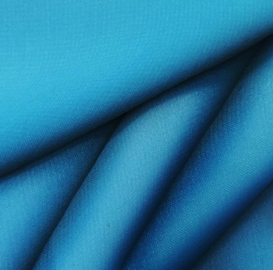 La tela base es Gasa Transparente - Salamanca, compuesta por 100% poliéster con un gramaje de 28 gr/m2 y un ancho de 150 cm. El color liso impreso es Azul Hiedra con un CMYK de 87 46 10 1. Este color secundario es del tipo frío y verdoso, simbolizando la frescura y la naturaleza, pero a su vez la estabilidad y la confianza. Se combina idealmente con tonos grisáceos, lilas suaves y verdes claros, y se relaciona con la introspección y lo espiritual. Cabe mencionar que la tela está impresa con el color liso a una sola cara por impresión digital textil.