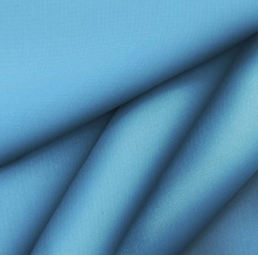 La tela base de este tejido es la gasa transparente Salamanca, compuesta por 100% poliéster y con un gramaje de 28 gr/m2. Su ancho es de 150 cm y está diseñada para aplicaciones principalmente en moda, como lencería, vestidos, faldas, pareos, pañuelos y ropa de niños. Esta tela es de temporada de verano y su color liso impreso es el azul seda, con una combinación de tinta cyan de 72, magenta de 34, yellow de 2 y black de 0, que representa un CMYK de 72 34 2 0. El color azul seda tiene una textura suave y delicada, que simboliza la tranquilidad y la serenidad y combina muy bien con otros colores como el blanco, el verde, el rosa y el dorado.