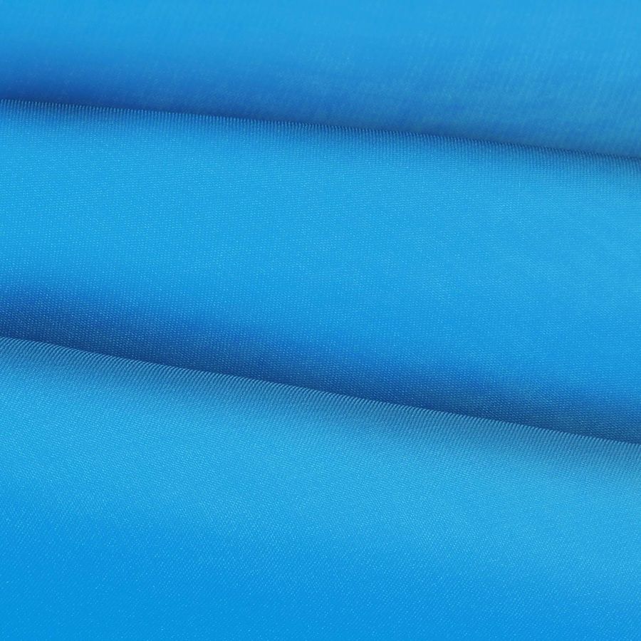 La tela base es la Gasa Transparente Salamanca, compuesta por 100% poliéster y con un gramaje de 28 gr/m2. El color liso impreso es azul con un contenido de tinta de 90 de Cyan, 53 de Magenta, 9 de Yellow y 1 de Black en el CMYK. Este color representa la tonalidad de los ojos azules y simboliza la profundidad y la serenidad. Combina perfectamente con tonalidades de blanco, gris y verde.