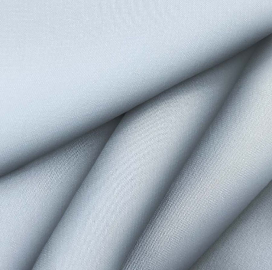 La tela base de esta descripción es la Gasa Transparente-Salamanca, compuesta por 100% poliéster, con un gramaje de 28 gr/m2, y un ancho de 150 cm. El color liso impreso es Azul Gris Azulado, con un valor CMYK de 29,11,3,0 respectivamente. Este color se caracteriza por su elegancia, sofisticación y tranquilidad. Es un color relajante que induce a la tranquilidad, la serenidad y la satisfacción. A nivel técnico, el color secundario combina la intensidad del azul con la calma del gris, aportando una sensación de estabilidad y equilibrio. En combinación con otros colores, como el blanco, el negro y el plateado, se obtiene un look sofisticado y elegante, ideal para cualquier evento. Es importante destacar que este tejido está impreso con el color liso a una sola cara por impresión digital textil, lo que implica que no es un tejido tintado sino impreso.