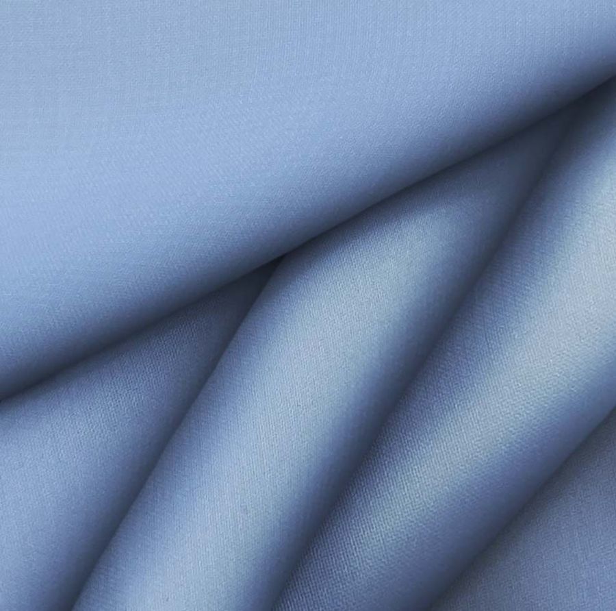 La tela base es la Gasa Transparente - Salamanca, con una composición del 100% poliéster y un gramaje de 28 gr/m2. Su ancho es de 150cm y está diseñada para usarse en una amplia variedad de prendas y accesorios, especialmente en lencería, vestidos y faldas, así como en trajes de baño y pañuelos de moda. El color liso impreso incluye el azul y el azul celeste en un CMYK de 65 45 5 0, lo que significa que el color predominante es el cian, seguido del magenta y solo una pequeña cantidad de amarillo. Se trata de un color que evoca la calma y la tranquilidad, aunque también se relaciona con la confianza y la estabilidad. Este color combina bien con tonos claros como el blanco y el rosa pastel, así como con tonos oscuros como el negro y el gris.