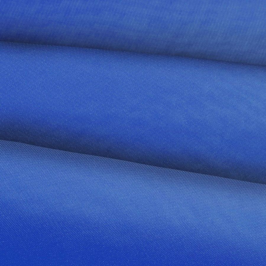 La tela base de este tejido es una hermosa gasa transparente de Salamanca, compuesta por un 100% de poliéster, con un peso de 28 gr/m2 y un ancho de tela de 150 cm. El color liso impreso es un azul lapislázuli vibrante, obtenido mediante el uso de tinta con una combinación de 100% cyan, 82% magenta, 21% amarillo y 4% negro en CMYK. Este tono de azul es un color secundario que se produce mezclando azul y violeta, lo que le da una sensación de calma y serenidad, y se complementa muy bien con tonos como el amarillo, el naranja, el rosa y el verde.