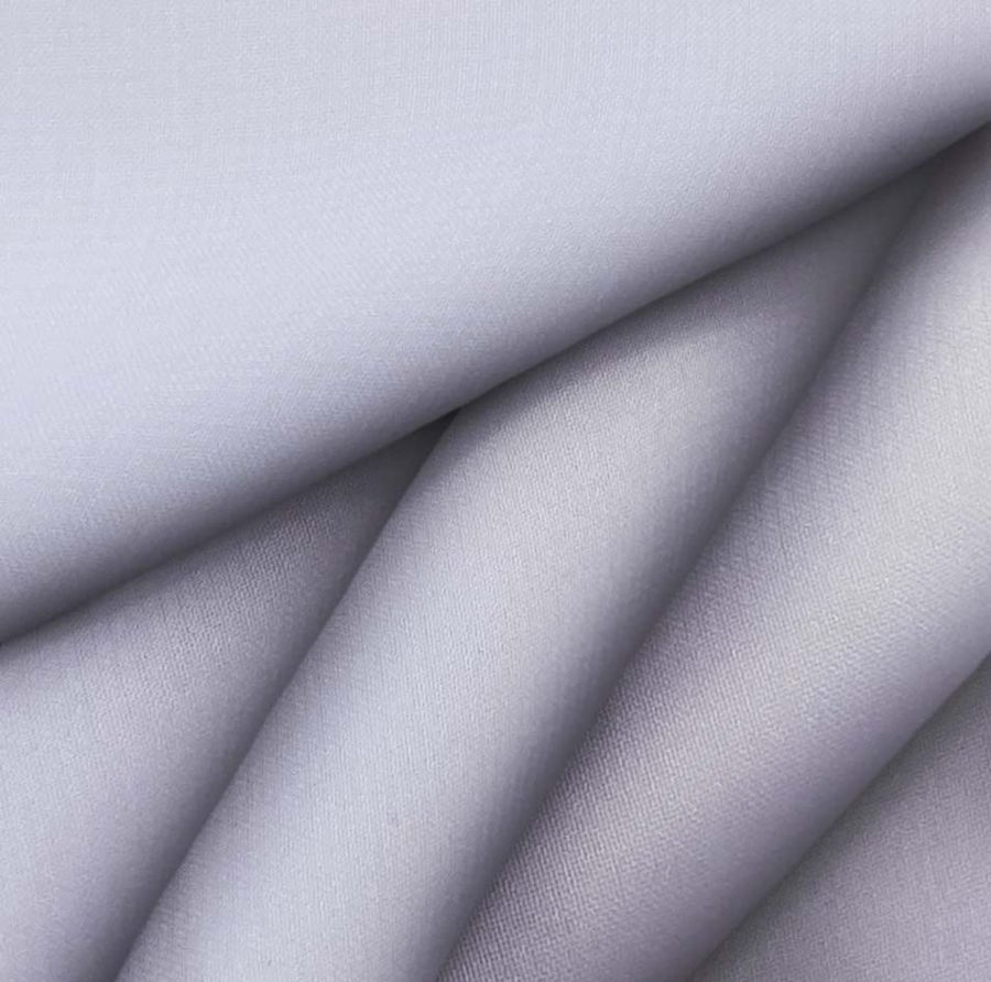 La tela base es la Gasa Transparente - Salamanca de 100% poliéster, con un gramaje de 28 gr/m2 y un ancho de 150 cm. El color liso impreso es Morado-Lila pálido, cuyos atributos se reflejan en el CMYK: 29 28 4 0. Este color es suave y delicado, evocando una sensación de tranquilidad. Es un color que combina perfectamente con otros tonos pastel, como rosa y azul bebé, así como con grises y verdes suaves.