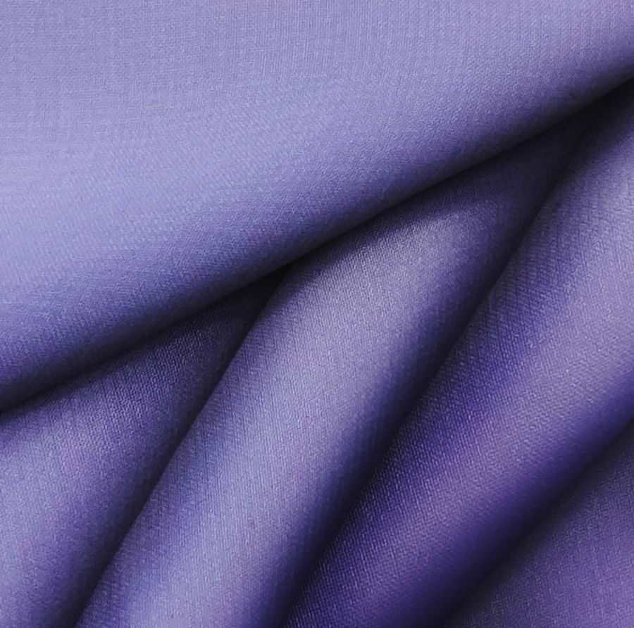 La tela base es la Gasa Transparente - Salamanca, compuesta por 100% poliéster y con un gramaje de 28 gr/m2. El color liso impreso es de un intenso morado, similar al arbusto de salvia púrpura. El color liso impreso tiene un CMYK de 73 73 7 0, lo que denota una combinación de cian y magenta al 73% y 7% de amarillo. Esta combinación de colores secundarios crea un tono púrpura que resalta en la tela base transparente. El color púrpura es un color asociado a la realeza, creatividad y conciencia espiritual. Este color combina perfectamente con tonos rosas, azules y verdes.