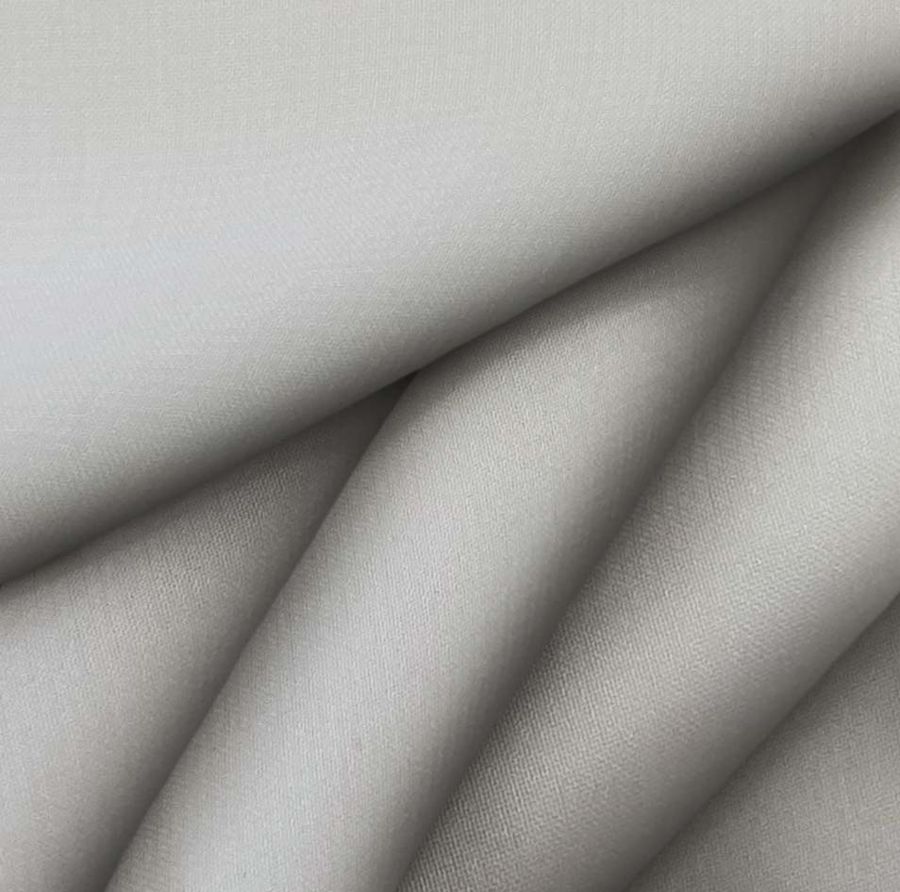 La tela base, Gasa Transparente - Salamanca, es un tejido ligero y transparente de composición 100% poliéster con un gramaje de 28 gr/m2 y un ancho de 150 cm. El color liso impreso es una combinación de gris y verde salvia con un CMYK de 33 27 31 7, lo que da como resultado un tono suave y natural. El color secundario, el verde salvia, simboliza la tranquilidad, la armonía y el equilibrio, y se combina bien con tonos como el gris, el blanco o el rosa pastel.