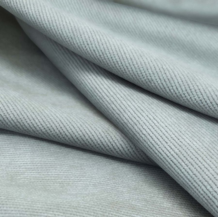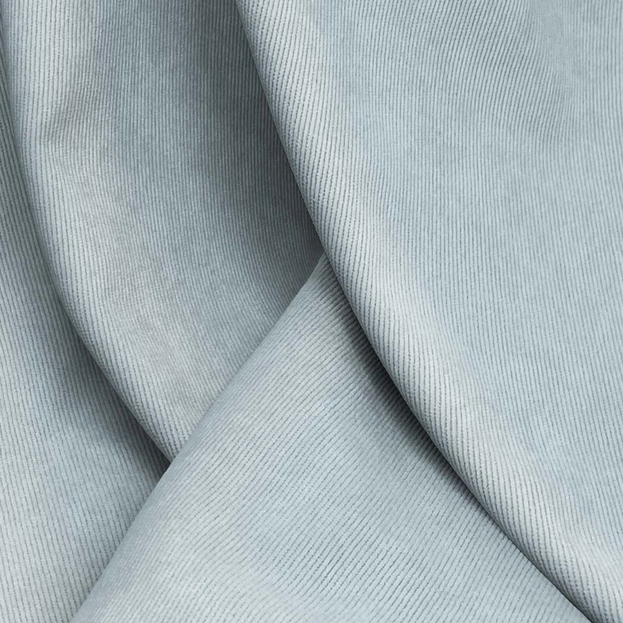 La tela base es la Pana Aterciopelada - Dublin, compuesta principalmente por poliéster, poliamida y elastano, con un gramaje de 280 gr/m2 y un ancho de 150 cm. El color liso impreso es un tono de azul pastel, con una combinación de tinta cian del 37%, magenta del 16%, amarillo del 20% y negro del 1%, dando como resultado un CMYK de 37 16 20 1.
