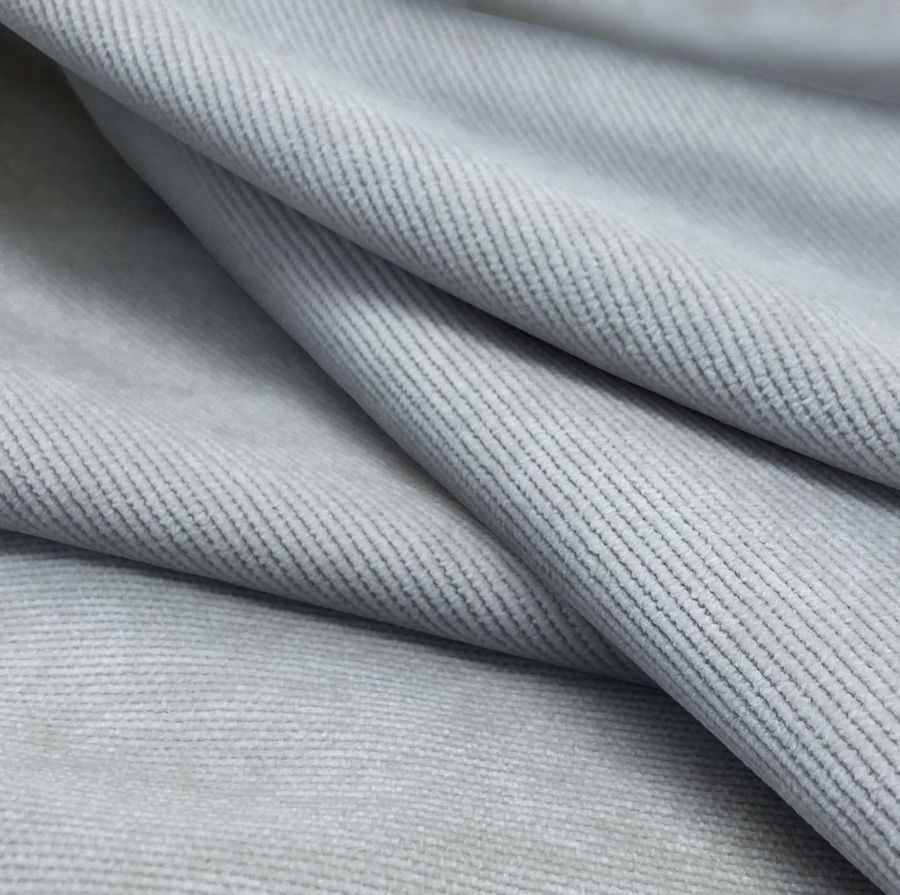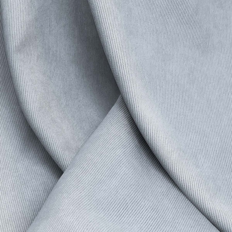 La tela base es la Pana Aterciopelada - Dublin. El color liso impreso es una tonalidad de gris-azulado, con un contenido de CMYK de 36 21 17 1. El color es una mezcla entre una base fría de gris con un toque sutil de azul, lo que genera una sensación de elegancia y sofisticación. Combina particularmente bien con tonos cálidos como el beige, el rosa palo y el marrón.