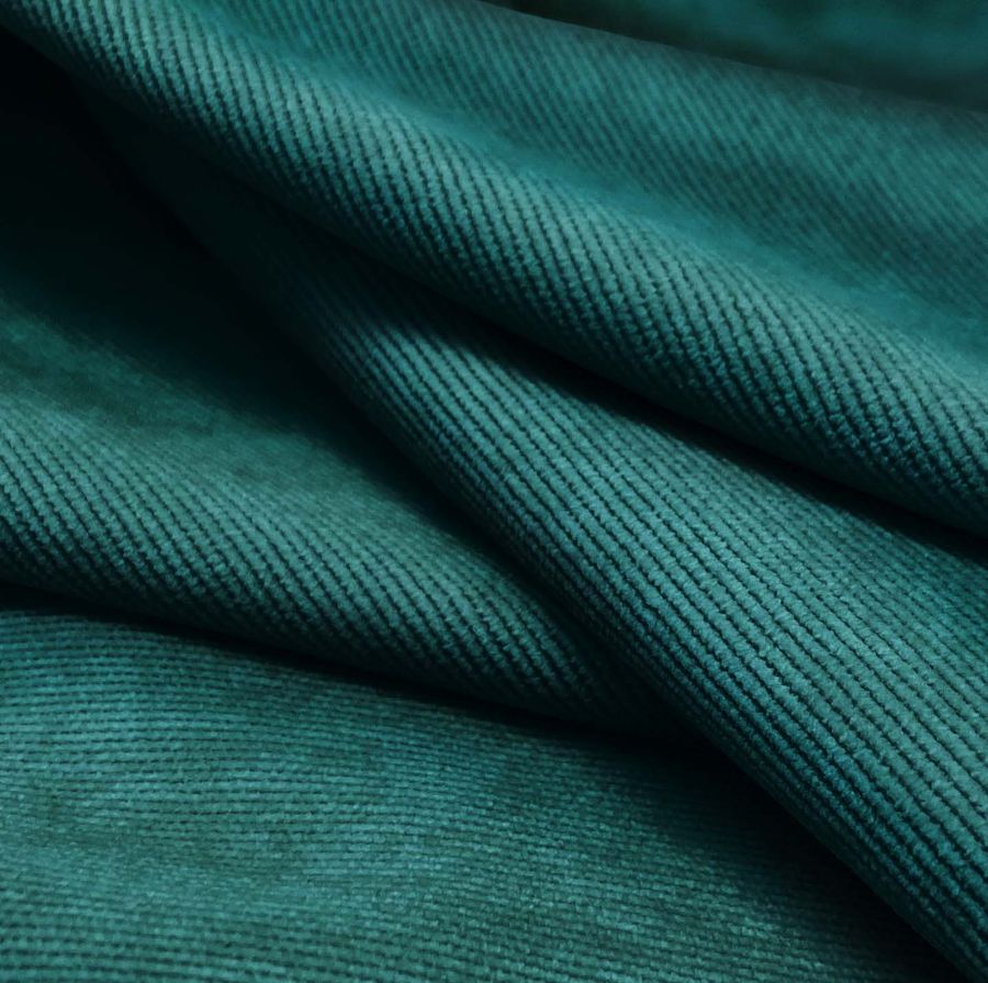 La tela base es la Pana Aterciopelada - Dublin, con una composición de 85% Poliéster, 12% Poliamida y 3% Elastano, un gramaje de 280gr/m2 y un ancho de 150 cm. El color liso impreso es un Verde Teal Profundo con un contenido de tinta Cyan del 93, tinta Magenta del 50, tinta Yellow del 52 y tinta Black del 49, representando un CMYK de 93 50 52 49. Este color tiene una estética de elegancia y sofisticación, evocando una sensación de serenidad y tranquilidad. Combina perfectamente con tonos como el gris, el beige o el marrón, contribuyendo a crear una sensación reconfortante y acogedora. El tejido está impreso con el color liso a una sola cara por impresión digital textil.