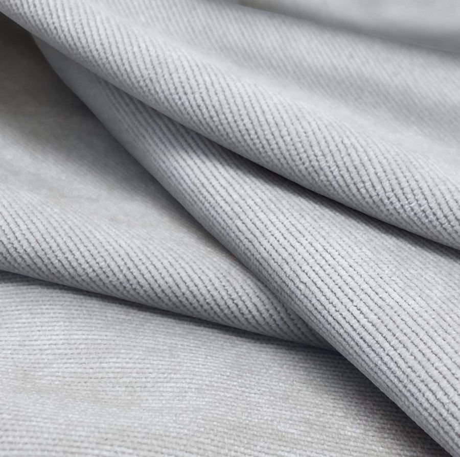 La tela base es la Pana Aterciopelada - Dublin, compuesta por un 85% de poliéster, un 12% de poliamida y un 3% de elastano. Su gramaje es de 280 gr/m2 y su ancho de 150 cm. El color liso impreso en la tela es un Azul Pastel con un CMYK de 23 14 7 0. Este color transmite serenidad y tranquilidad, pero también elegancia y sofisticación. Combina especialmente bien con tonos cálidos, como amarillos, dorados o beige, pero también con otros tonos fríos como grises o azules oscuros.