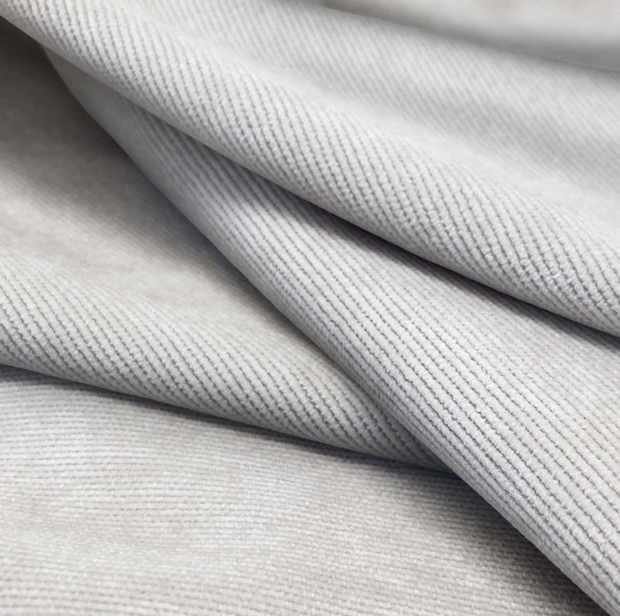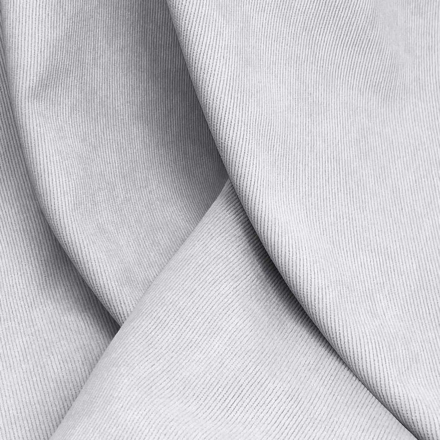 La tela base es la Pana Aterciopelada - Dublin, compuesta por 85% poliéster, 12% poliamida y 3% elastano, con un gramaje de 280 gr/m2 y un ancho de 150 cm. El color liso impreso es un tono azul lavanda, con una tinta cyan de 11, tinta magenta de 8, tinta yellow de 4 y tinta black de 0, lo que da como resultado un CMYK de 11 8 4 0. Este color transmite una sensación de calma y suavidad, evocando al mar y a los campos de lavanda. Combina perfectamente con tonos blancos, grises, rosas y amarillos, creando una atmósfera ecléctica y acogedora.