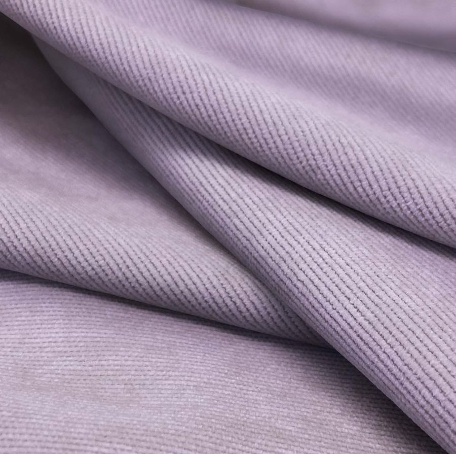 La tela base de este tejido es la Pana Aterciopelada - Dublin, compuesta por 85% poliéster, 12% poliamida y 3% elastano, tiene un gramaje de 280 gr/m2 y un ancho de 150 cm. Se trata de una tela suave al tacto y con un brillo visual destacable, que la convierte en un material ideal para la decoración y la moda. El color liso impreso que se ha utilizado es el Morado,Flor Purpura, el cual está compuesto por cyan (33%), magenta (40%), yellow (5%) y black (0%), lo que se representa en el CMYK como 33 40 5 0.