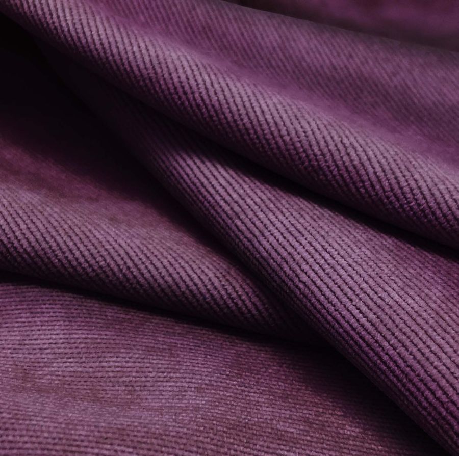 La tela base de esta prenda es la pana aterciopelada Dublin, con una composición de 85% poliéster, 12% poliamida y 3% elastano, y un gramaje de 280 gr/m2. El color liso impreso es un morado oscuro con un CMYK de 71 91 37 45. Este color evoca la elegancia y la sofisticación, y combina especialmente bien con tonos neutros como el gris y el negro, pero también con tonos rojizos y naranjas.