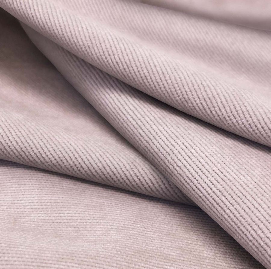 La tela base es la Pana Aterciopelada - Dublin, una pana compuesta en un 85% de poliéster, un 12% de poliamida y un 3% de elastano con un gramaje de 280 gr/m2 y un ancho de 150 cm. El color liso impreso es rosa/rosa rosada, con un CMYK de 9 28 10 0, que otorga un tacto suave y un brillo visual a la tela. El rosa es un color que simboliza el amor y la dulzura, asociado a la feminidad y la sensibilidad. Además de combinar bien con tonos claros como el blanco o el azul pastel, el rosa también puede resaltar con colores más vibrantes como el amarillo o el naranja.