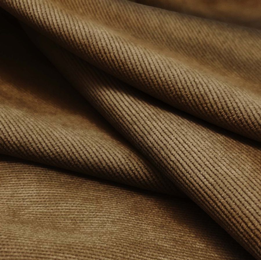 Las características generales de la tela base y su color impreso son de alta calidad y durabilidad. La pana aterciopelada es un tejido denso y resistente, ideal para tapizar y para prendas de vestir como pantalones, chaquetas y blazers. Por su parte, el color marrón chocolate con leche es un tono atemporal, perfecto para prendas y para usar en la decoración del hogar.