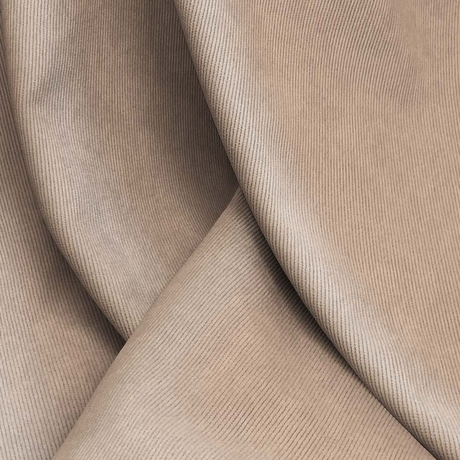 La Pana Aterciopelada - Dublin es un tejido de tipo pana con una composición del 85% de poliéster, 12% de poliamida y un 3% de elastano. Su gramaje es de 280 gr/m2 y tiene un ancho de 150 cm. El color liso impreso en este tejido es marrón camel, con un CMYK de 26 36 44 12. Este color es cálido y evoca una sensación de confort y elegancia, perfecto para usos en decoración y prendas de moda. Su combinación con otros colores se ve exaltada, especialmente con tonos verdes, dorados y grises.