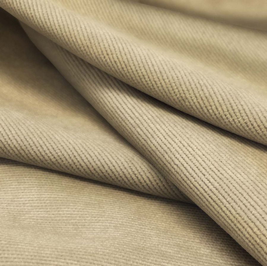 La tela base es la Pana Aterciopelada - Dublin, compuesta por 85% de poliéster, 12% de poliamida y 3% de elastano. Tiene un gramaje de 280 gr/m2, un ancho de 150 cm y no se recomienda su blanqueamiento. El color liso impreso en esta tela es marrón con una base de beige francés claro, según los datos proporcionados por el CMYK con una combinación de tintas cian, magenta, amarillo y negro de 20, 27, 49 y 5, respectivamente.