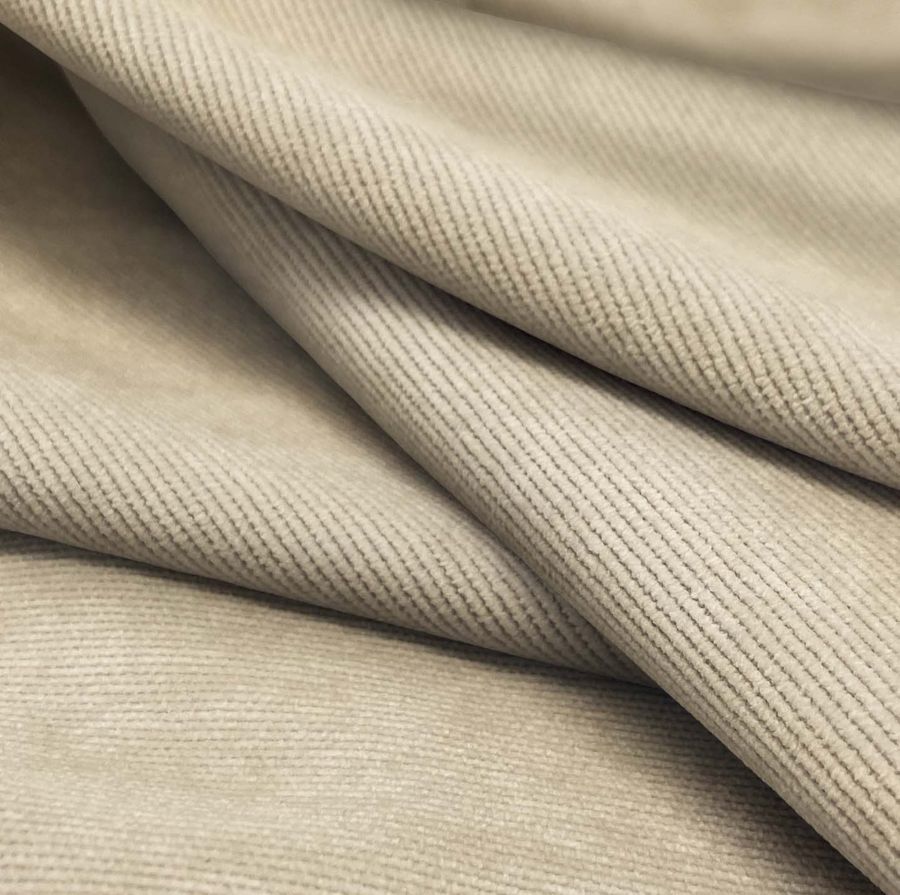 La tela base de este tejido es la Pana Aterciopelada - Dublin, con una composición de 85% POLIÉSTER, 12% POLIAMIDA, 3% ELASTANO y un gramaje de 280 gr/m2. El color liso impreso en esta tela es una combinación de Crudo y Bronceado, con un CMYK de 15 20 36 2. Este color secundario tiene un aspecto cálido y acogedor que evoca a la naturaleza y la tierra. Combina excelentemente con tonos marrones, verdes o azules, creando una sensación de calma y serenidad en la habitación.
