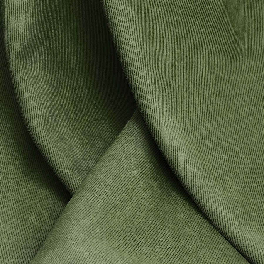 La tela base de este tejido es la Pana Aterciopelada - Dublin, compuesta por un 85% de poliéster, un 12% de poliamida y un 3% de elastano. Su gramaje es de 280 gr/m2 y su ancho de 150 cm. Su color liso impreso es un verde bosque oscuro, con un CMYK de 69 45 85 45. Este color destaca por su profundidad y elegancia, transmitiendo un aire tranquilo y natural. Combina muy bien con tonos tierra, beige, gris y blanco.