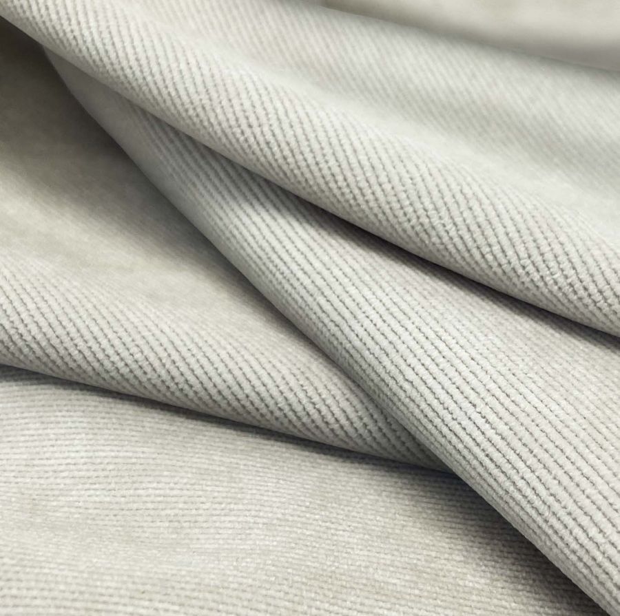 La tela base es la Pana Aterciopelada - Dublin, compuesta por 85% POLIÉSTER, 12% POLIAMIDA y 3% ELASTANO, con un gramaje de 280 gr/m2 y un ancho de 150 cm. El color liso impreso en la tela es Crudo/Beige con un CMYK de 9 5 15 0, caracterizado por una sutileza y calidez que lo hacen perfecto para la temporada de Invierno. El tono beige con toques cremosos y claros hace que éste combine bien con otros colores cálidos y tierras, como el marrón o el dorado.