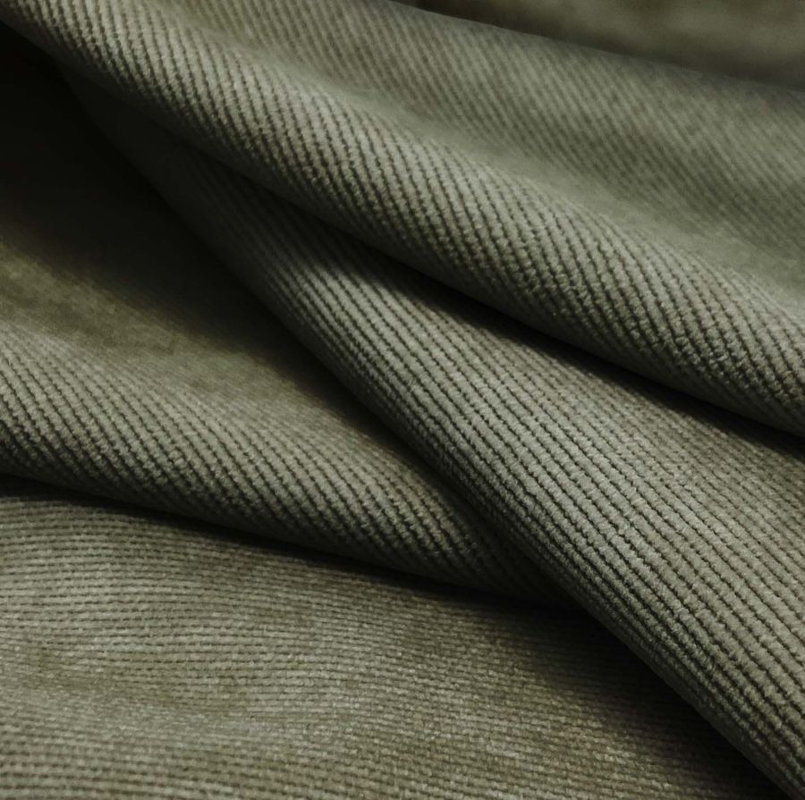 La tela base de este tejido es la Pana Aterciopelada - Dublin, compuesta por 85% POLIÉSTER, 12% POLIAMIDA y 3% ELASTANO, con un gramaje de 280 gr/m2 y ancho de 150 cm. El color liso impreso es Gris Pardo, con un CMYK de 62 48 63 47. Este color evoca una sensación terrosa y sofisticada, combinando perfectamente con tonos tierra, beige y blancos. Cabe destacar que el tejido está impreso como una capa superficial por impresión digital textil.