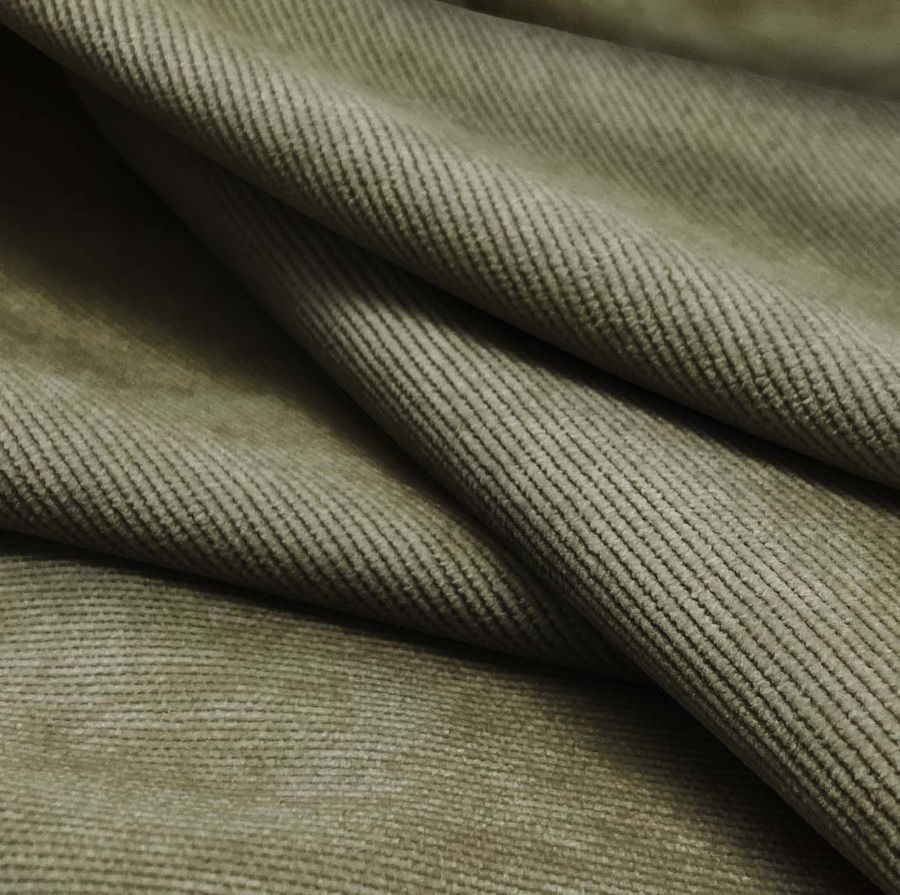 La tela base elegida para este caso es la Pana Aterciopelada - Dublin, compuesta por un 85% de poliéster, un 12% de poliamida y un 3% de elastano, con un gramaje de 280 gr/m2 y un ancho de 150 cm. En cuanto al color liso impreso, podemos apreciar una combinación de marrón y verde ejército con un CMYK de 56 45 64 40.