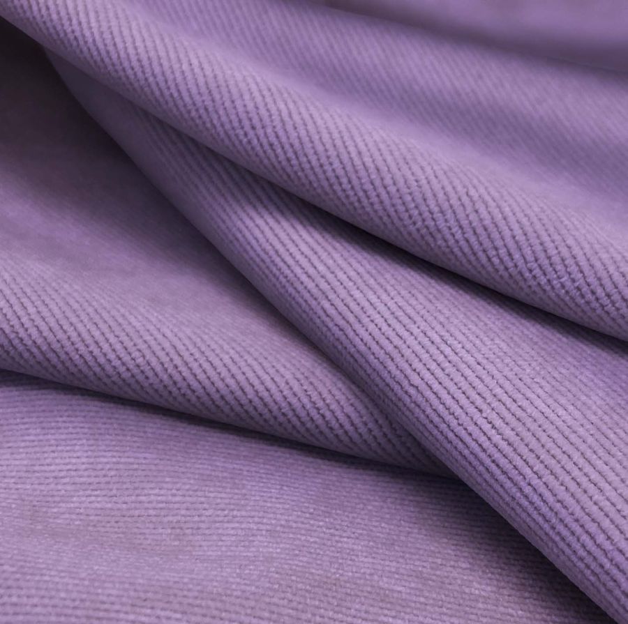 La Pana Aterciopelada - Dublin es un tejido de tipo pana con una composición del 85% poliéster, 12% poliamida y 3% elastano. Su gramaje es de 280 gr/m2 y su ancho de 150 cm. El color liso impreso es un hermoso morado-lavanda púrpura con un CMYK de 53 59 7 0. Este color es un símbolo de la espiritualidad y la tranquilidad, y se asocia con la creatividad y la imaginación. Combina bien con colores neutros como el gris, el beige y el blanco, pero también se puede combinar con tonos vibrantes como el amarillo y el naranja.
