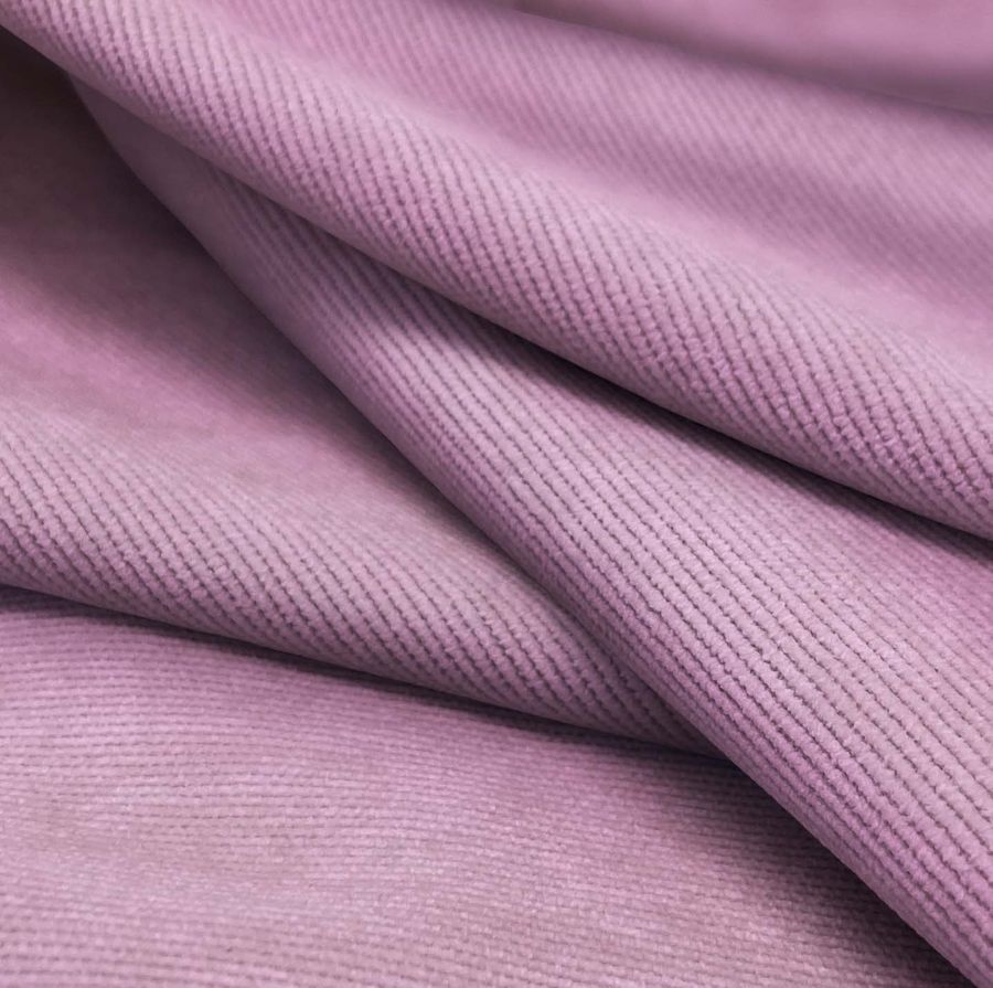 La tela base es la Pana Aterciopelada - Dublin, compuesta en un 85% de poliéster, un 12% de poliamida y un 3% de elastano, con un gramaje de 280 gr/m2 y un ancho de 150 cm. El color liso impreso es Morado Ciruela, con un CMYK de 24 53 5 0. Este color evoca la profundidad de la noche y sugiere misterio, elegancia y realismo. Este tono elegante combina especialmente bien con tonos neutros como el blanco, el negro y el gris, generando atmósferas clásicas y sofisticadas. La tela está impresa con este color a una sola cara por impresión digital textil.