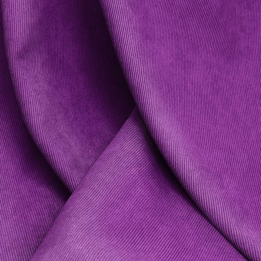 La tela base Pana Aterciopelada - Dublin es una pana compuesta por 85% poliéster, 12% poliamida y 3% elastano, con un gramaje de 280 gr/m2 y un ancho de 150 cm. El color liso impreso es Morado Mermelada Púrpura, contenido en un CMYK de 69 100 10 3, que produce un tono vibrante y atractivo. Este color secundario combina especialmente bien con tonos tierra, amarillos y naranjas, creando un contraste equilibrado y elegante.