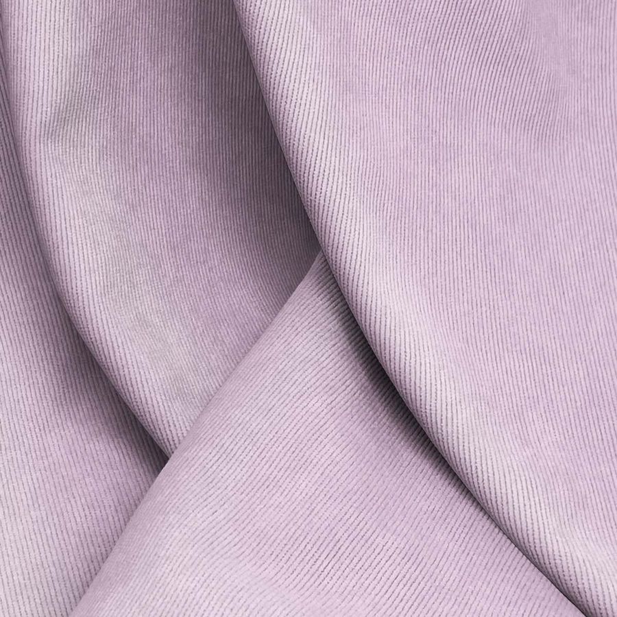 La tela base de este tejido es una Pana Aterciopelada - Dublin, compuesta mayoritariamente por poliéster con un 85%, 12% de poliamida y un 3% de elastano. Con un gramaje de 280 gr/m2 y un ancho de tela de 150 cm, su color liso impreso se compone de tonos morados y bígaro, con una tinta cyan del 15, magenta del 34, y yellow y black del 3 y 0 respectivamente. Este color secundario tiene una connotación mística, representativa de la transmutación y la espiritualidad, que combina muy bien con colores neutros como el blanco y el negro, o con tonos cálidos como el naranja o el amarillo.
