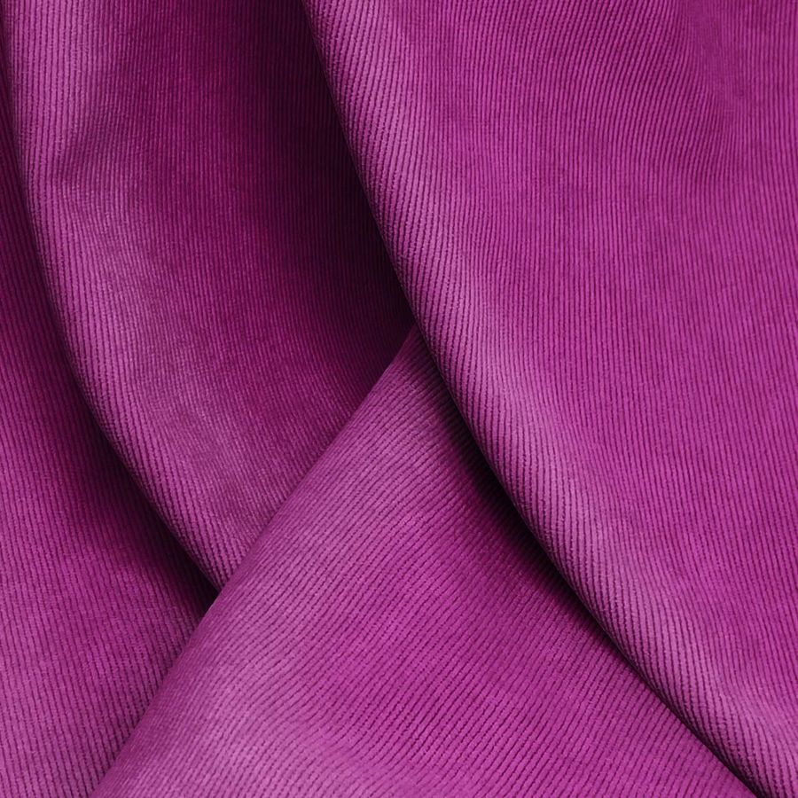 La tela base es la Pana Aterciopelada - Dublin, compuesta por 85% poliéster, 12% poliamida y 3% elastano, con un gramaje de 280 gr/m2 y un ancho de 150 cm. El color liso impreso es de un Morado Berenjena, con un CMYK de 51 100 19 13. Este color se caracteriza por ser profundo, intenso y lujoso, evocando a la elegancia, la sofisticación y la seducción. El Morado Berenjena combina perfectamente con tonos cálidos como el naranja, el dorado y el marrón, así como con tonos fríos como el blanco y el gris.