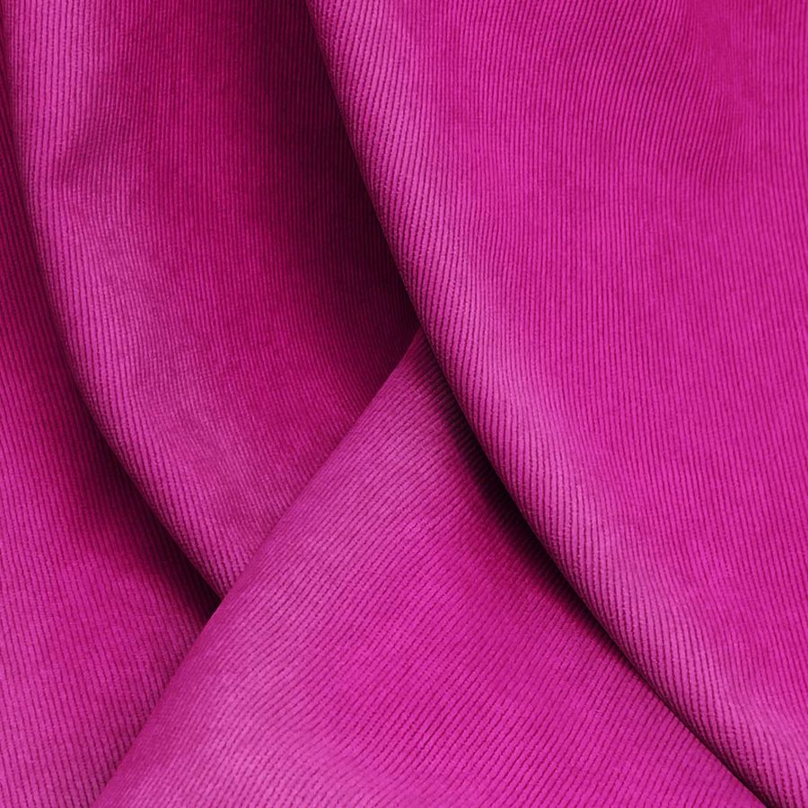 La tela base es la Pana Aterciopelada - Dublin, compuesta por un 85% de poliéster, un 12% de poliamida y un 3% de elastano, con un gramaje de 280 gr/m2 y una anchura de 150 cm. El color liso impreso es un rosa clavel oscuro, con un CMYK de 26 100 13 3, el cual proporciona una textura visual brillante a la tela base suave al tacto. Este color secundario combina bien con tonos tierra, beige y grises.